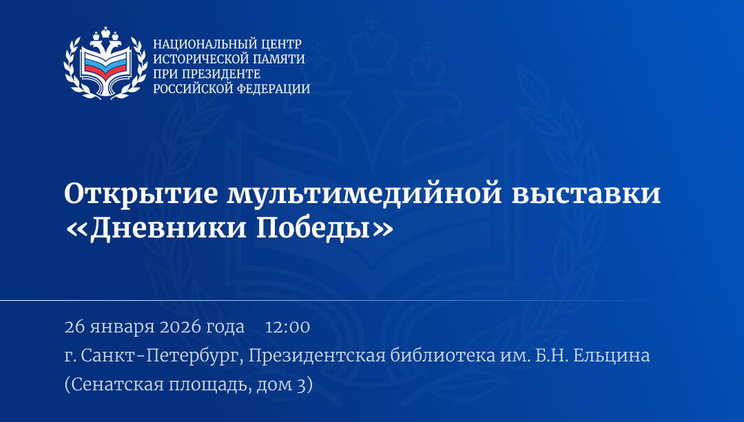 В Президентской библиотеке им. Б.Н. Ельцина состоится открытие мультимедийной выставки «Дневники Победы». Мероприятие приурочено к 82-й годовщине полного освобождения Ленинграда от нацистской блокады во время Великой Отечественной войны.