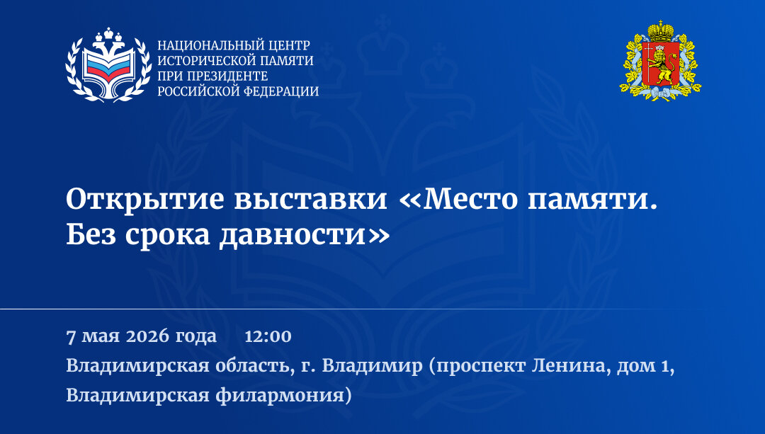 В городе Владимир, Владимирской области состоится открытие выставки «Место памяти. Без срока давности», приуроченной к 81-й годовщине Победы в Великой Отечественной войне.