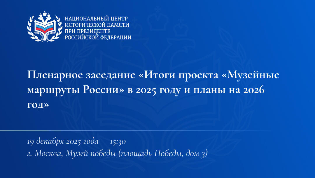 В Музее Победы состоится пленарное заседание, посвященное проекту Министерства культуры Российской Федерации «Итоги проекта «Музейные маршруты России» в 2025 году и планы на 2026 год», в котором примут участие руководители и сотрудники федеральных, региональных и муниципальных музеев, специалисты в области медиа, культуры и работы с молодежью.