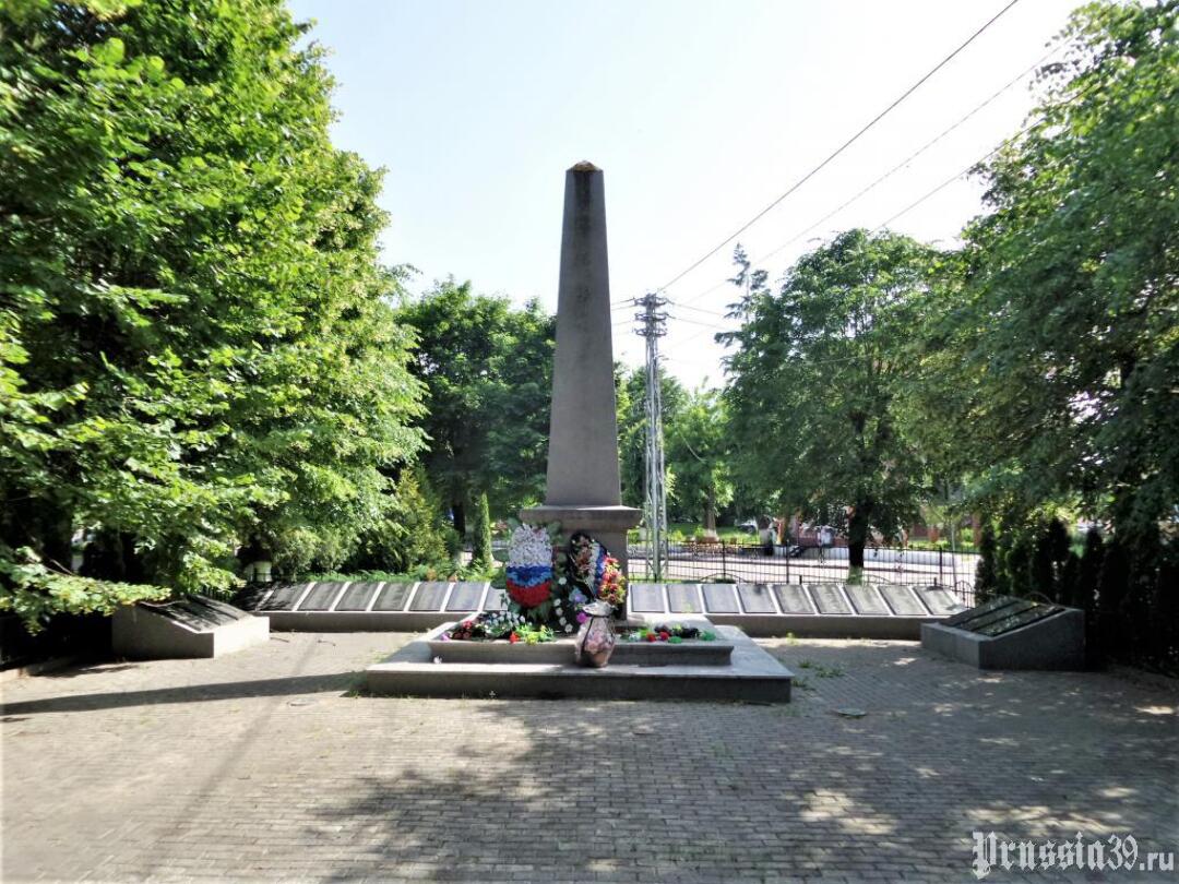 Братская могила советских воинов образовалась в ходе боевых действий, в послевоенное время в нее были перенесены останки воинов из братских могил в окрестностях города. Захоронено более 660 воинов. Памятник на братской могиле в Полесске установлен в 1948 году, ремонтно-реставрационные работы произведены в 1984 году. По центральной оси прямоугольной в плане площадки на гранитном постаменте установлен обелиск пирамидальной формы высотой 4 м. На лицевой стороне надпись: "Вечная слава героям, павшим в боях за свободу и независимость нашей Родины в Великой Отечественной войне 1941-1945 годов". За обелиском, на бетонном основании с наклонной плоскостью установлены 25 мемориальных плит. Территория площадью 300 кв. м вымощена плиткой и огорожена металлической цепью.