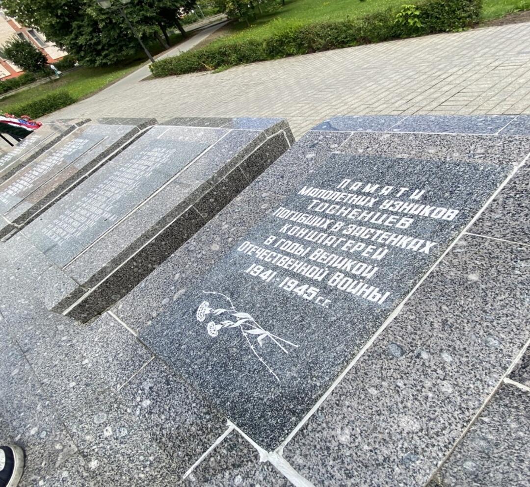 Памятник в городе Тосно Ленинградской области посвящён памяти советских солдат и мирных жителей, погибших в годы Великой Отечественной войны. Его официальное название звучит как «Советским солдатам и юным узникам фашизма». Открытие памятника состоялось в мае 1985 года, приуроченное к празднованию сорокалетия Победы над нацистской Германией. История памятника связана с трагическими событиями военных лет, когда город Тосно оказался оккупирован немецкими войсками. Здесь проходили жестокие бои, тысячи местных жителей были угнаны в плен или погибли от голода, болезней и насилия. Советские солдаты, сражавшиеся против захватчиков, также понесли большие потери. Юные жители города подвергались особенно тяжёлым испытаниям: многие подростки были отправлены в концентрационные лагеря и погибали там от невыносимых условий содержания. Монумент представляет собой композицию, символизирующую скорбь и героизм народа. Центральная фигура – молодой солдат, стоящий перед мемориальной плитой с именами погибших воинов и жертв концлагерей. На отдельной мемориальной плите надпись: "Памяти малолетних узников — тосненцев, погибших в застенках концлагерей в годы Великой Отечественной войны 1941–1945 гг."