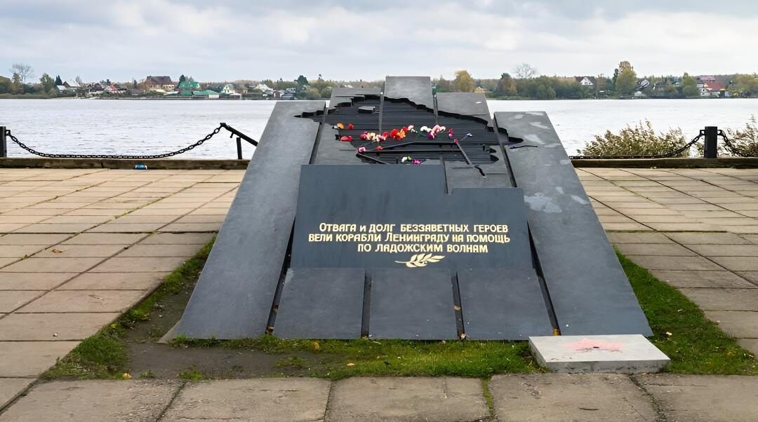 В состав мемориала входят тральщик «ТЩ-100», буксир «Харьков» и памятный знак-стела. Мемориал ограждён якорной цепью, закреплённой на металлических опорах, с двумя металлическими якорями в центре композиции. На металлической наклонной стеле, выполненной из чёрного гранита, выбит схематично изображённый контур Ладожского озера, ниже на отдельной табличке размещён текст: «Краснофлотцам и командирам, шкиперам и капитанам, морякам и речникам Ладоги, спасавшим Ленинград и ленинградцев в тяжкие дни и ночи блокады 1941—1944 гг. Отвага и долг беззаветных героев вели корабли Ленинграду на помощь по ладожским волнам. Высокая слава героев, в достойных потомках живи». Мемориал открыт 9 мая 1985 года.