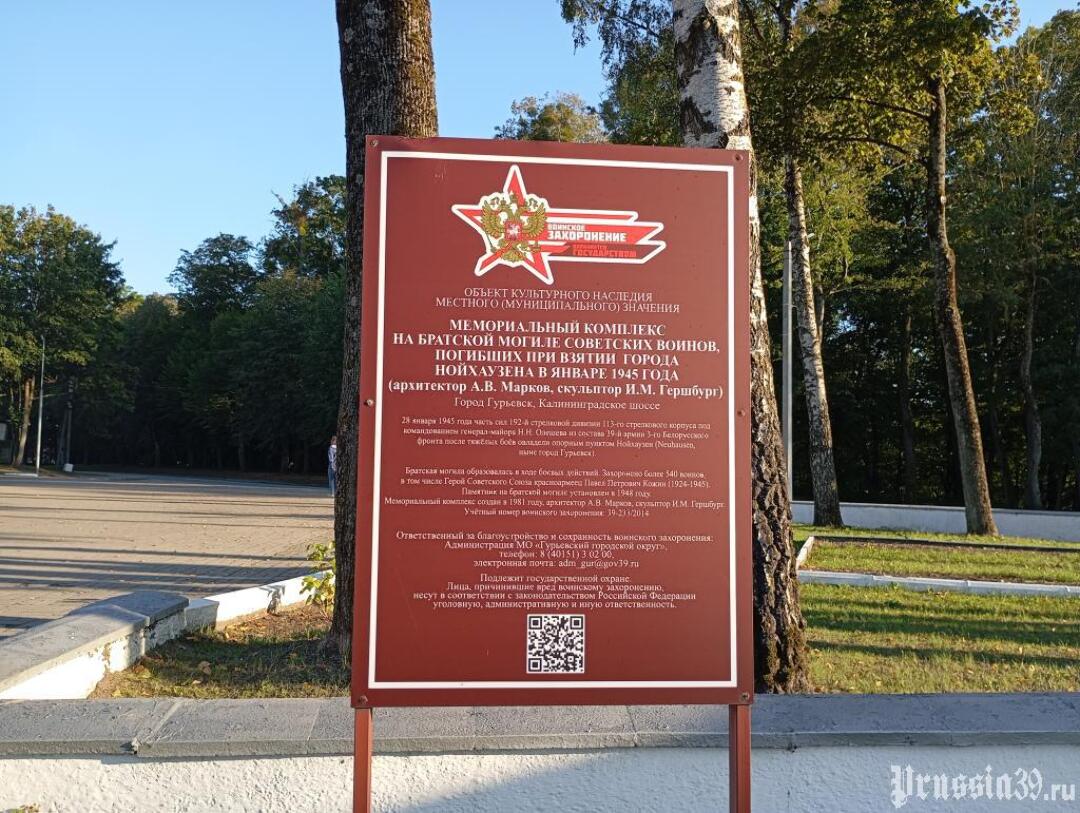 Мемориальный комплекс на братской могиле советских воинов, погибших в 1945 году при штурме Нойхаузена в ходе Восточно-Прусской операции