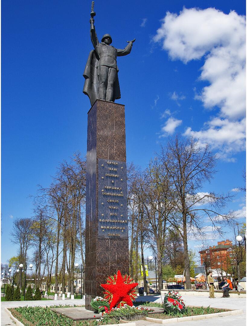Парк Победы с мемориальным комплексом героям Великой Отечественной войны был открыт в центре Можайска в 1985 году. Городу пришлось пережить трагические события нацистской оккупации. В июле-октябре 1941 г. строилась Можайская линия обороны. С 12 по 18 октября 1941 г. под Можайском шли упорные бои с нацистскими войсками. 20 января 1942 г. Можайск был освобождён войсками 5-й армии РККА. В боях с нацистскими захватчиками на Можайской земле погибло 48448 воинов 5-й армии. Они покоятся в 73 братских могилах. В парке Победы захоронены бойцы и командиры Красной Армии защищавшие и освобождавшие город во время Великой Отечественной войны. Здесь же установлены памятники военным связистам и партизанам, а также военная техника: две пушки ЗИС-3 и зенитная установка 61-К.