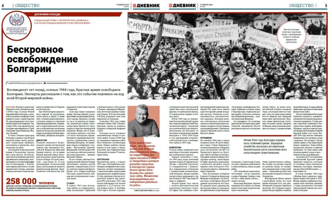 Национальный центр исторической памяти при Президенте Российской Федерации продолжает принимать участие в спецпроекте «Петербургского дневника» к 80-летию Великой Победы. В новом выпуске эксперты Центра рассказали, как освобождение Болгарии повлияло на ход всей Второй мировой войны.