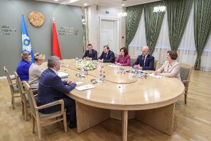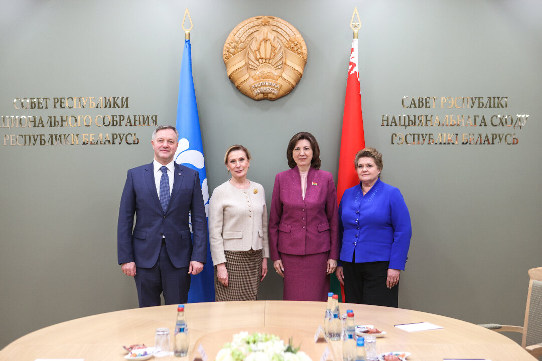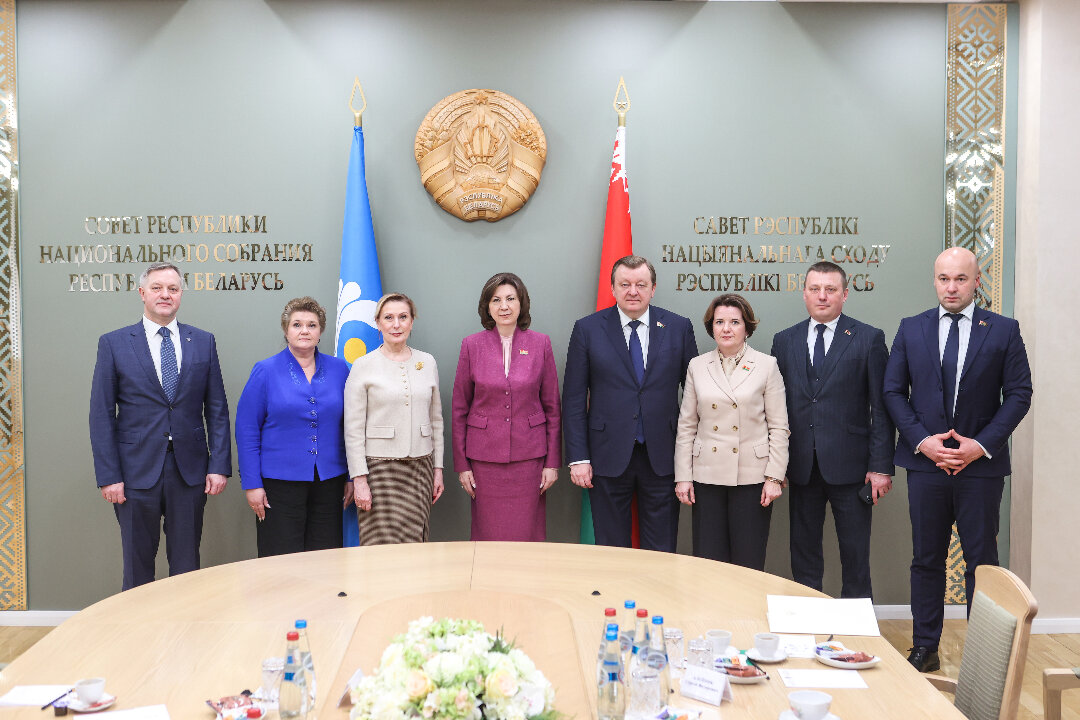 С белорусской стороны во встрече приняли участие: Сергей Алейник, председатель Постоянной комиссии по международным делам и национальной безопасности, Роман Бродов, председатель Постоянной комиссии по экономике, бюджету и финансам, Наталия Павлюченко, председатель Постоянной комиссии по образованию, науке, культуре и социальному развитию, Сергей Хоменко, заместитель Генерального секретаря Совета МПА СНГ, Полномочный представитель Национального собрания Республики Беларусь при МПА СНГ и ПА ОДКБ.