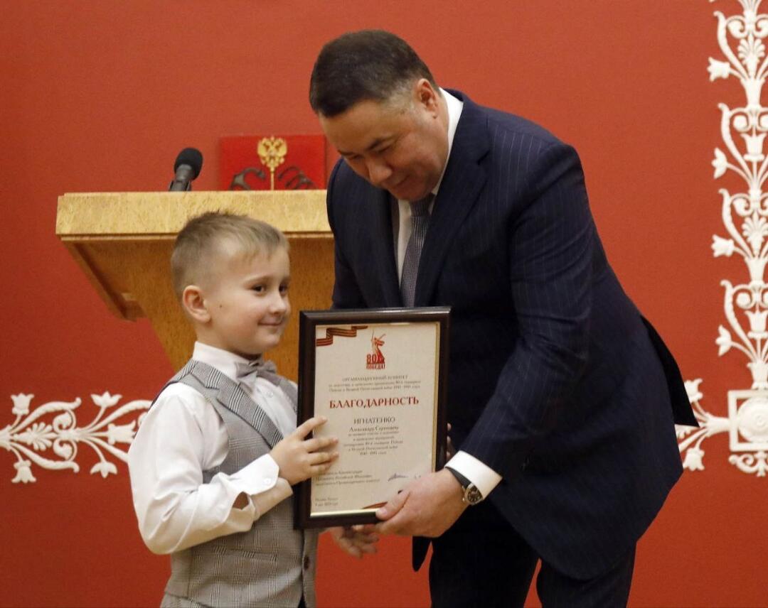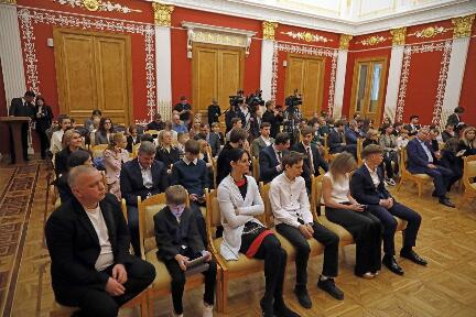 Награждение приурочено ко Дню полного освобождения Ленинграда от нацистской блокады. Полпред президента Игорь Руденя вручил благодарности Оргкомитета по подготовке и проведению празднования 80-й годовщины Великой Победы 40 детям из Санкт-Петербурга и Ленинградской области, принявшим участие в съемках фильма «Группа крови» об истории детского концлагеря, который нацисты создали в поселке Вырица под Ленинградом, и сериала «Таганрог» о героях подполья, боровшихся с немецкими захватчиками во время оккупации Ростовской области.
