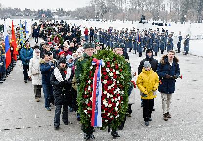 В 82-ю годовщину освобождения Ленинграда от блокады победители Всероссийского конкурса инициатив по сохранению и защите исторической памяти на Пискарёвском мемориальном кладбище возложили цветы к монументальной скульптуре «Мать-Родина». Это главный памятник жертвам блокады Ленинграда, воинам Ленинградского фронта.