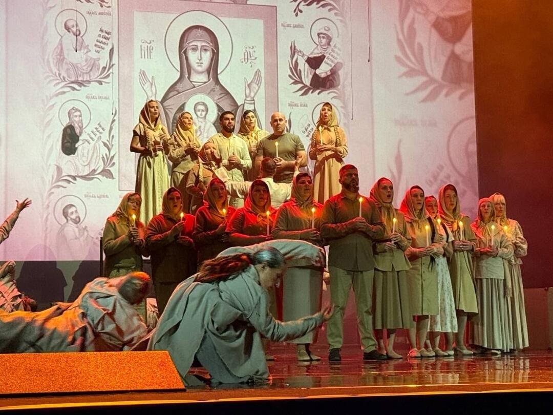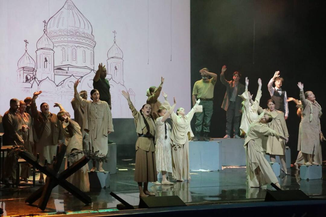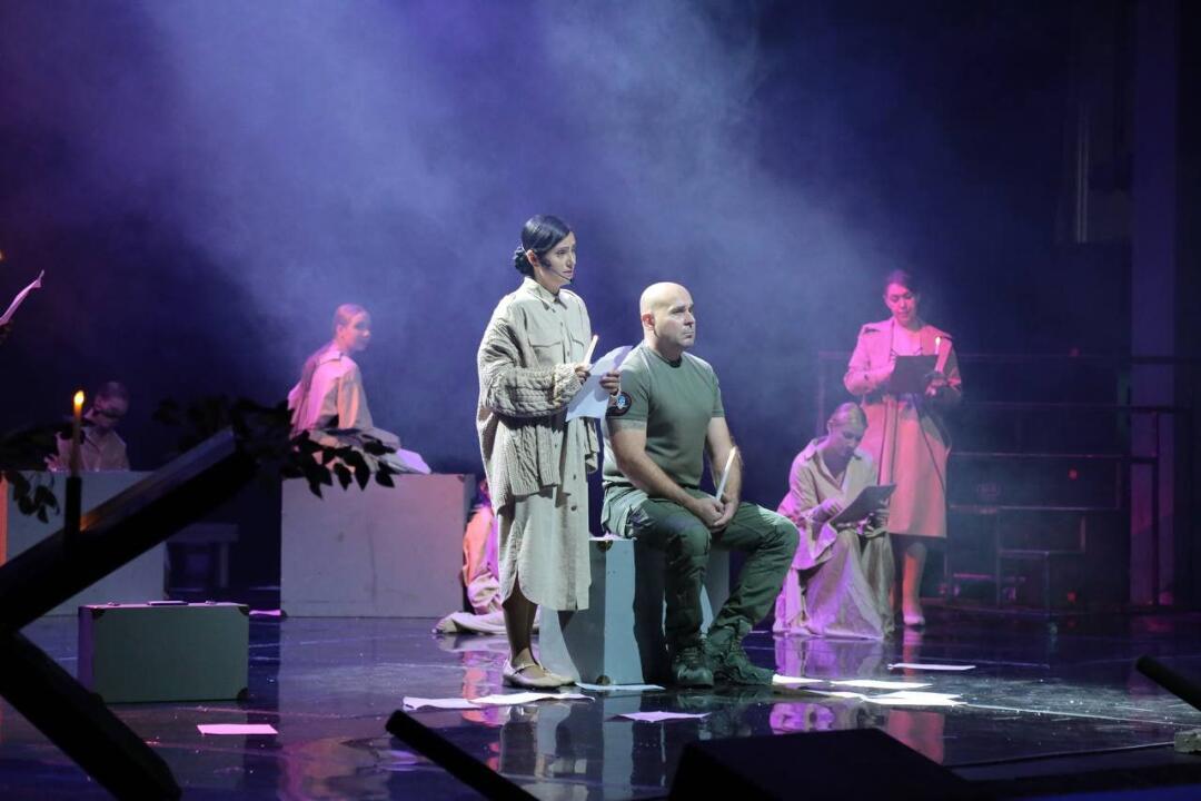 Уникальность проекта состоит еще и в творческом составе исполнителей: вместе с актерами Народного театра «Новый город» на сцену выходят жители приграничных районов Курской области, среди них – участники СВО, добровольцы, врачи, матери и дети, пережившие удары августа 2024 года.