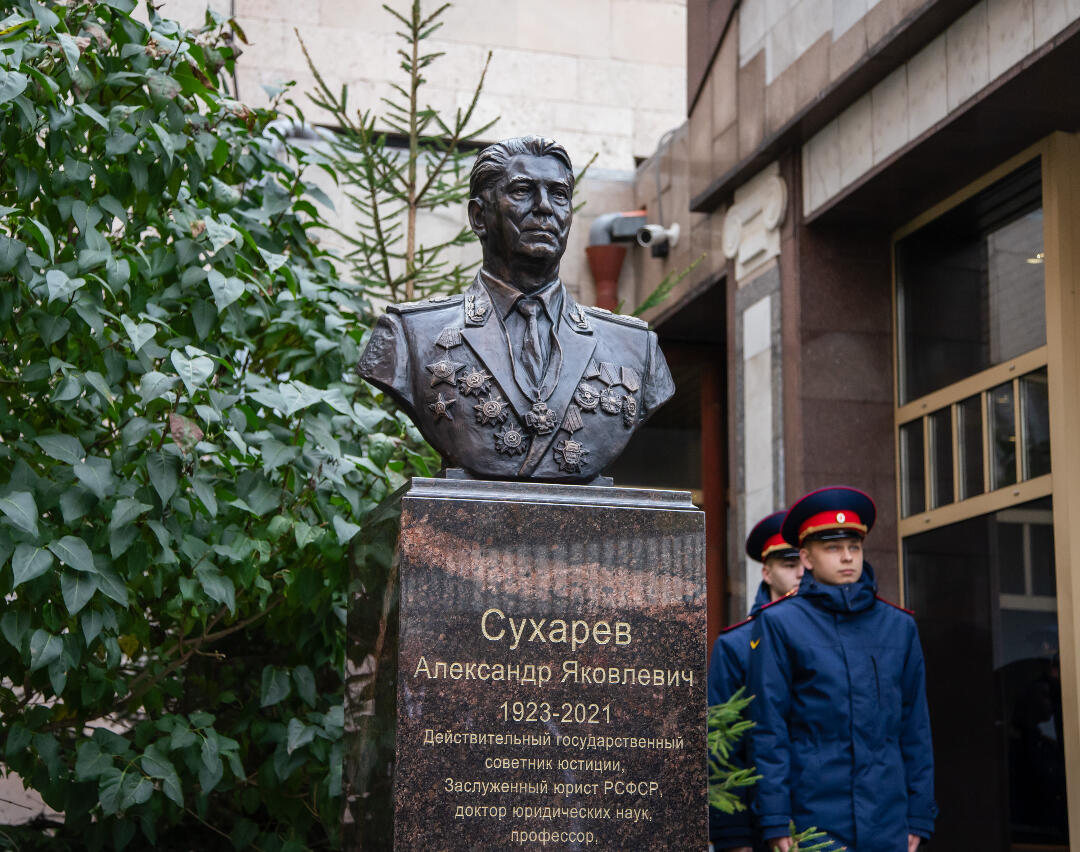 У стен Московской академии Следственного комитета Российской Федерации открыт бюст выдающегося юриста и ученого-правоведа Александра Яковлевича Сухарева, в разные годы возглавлявшего Министерство юстиции РСФСР и Генеральную прокуратуру СССР.